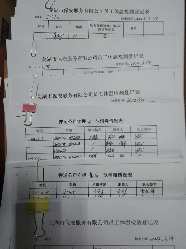 三、武装守护押运分公司体温检测、消毒情况登记表。