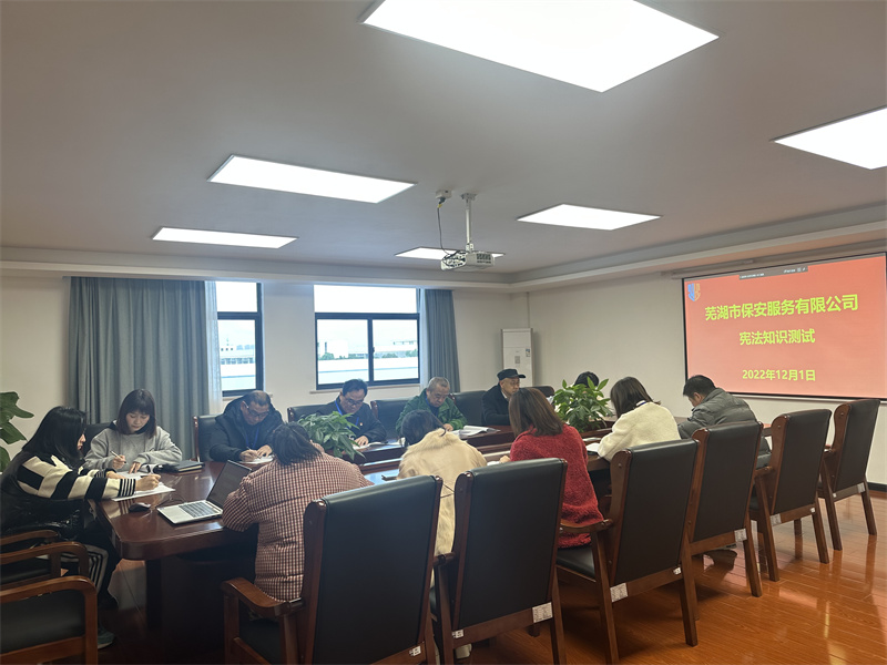 结合武装守护押运、保安服务服务面广、分散作业的实情,公司要求各部门、分公司以部门、班组为单位,采取线上、线下结合的方式组织学习;同时运用公开栏、微信工作群、电子屏等进行学习和宣传,拓宽学习形式、注重学习实效。为检验学习效果、加深理解记忆,12月1日,公司组织班子成员、中层以上管理人员和管理骨干进行宪法知识测试。